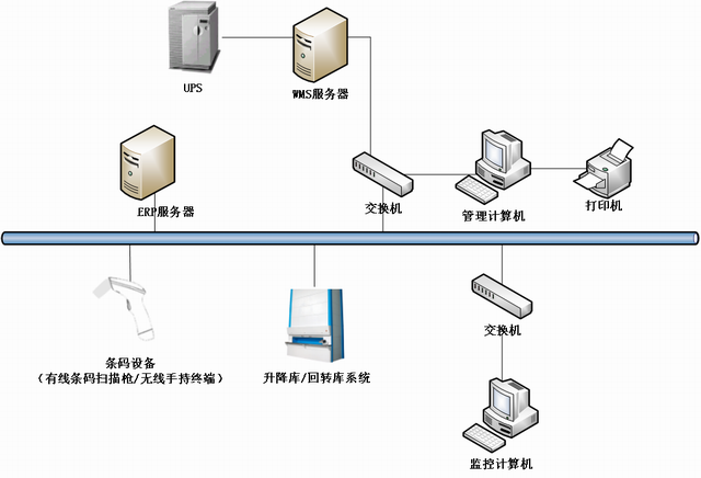 服務(wù)器:在服務(wù)器上運(yùn)行管理系統(tǒng)數(shù)據(jù)庫(kù)軟件,存儲(chǔ)所有相關(guān)的庫(kù)位、物料、用戶、人員等信息。